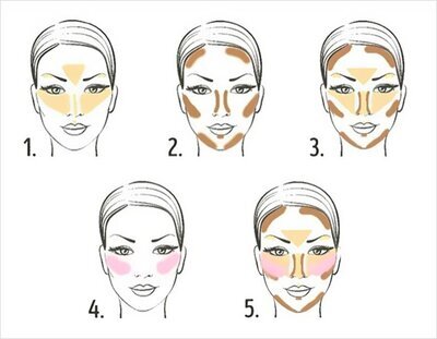 Схема нанесения хайлайтера, контуринга и румян для dolphin skin: