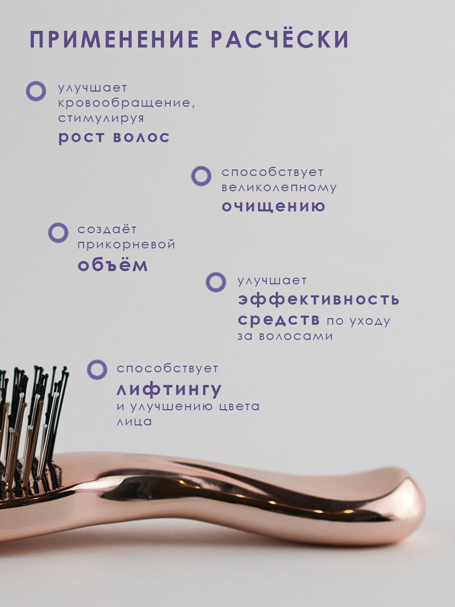 Добавляет объём тонким волосам, за счёт бережного очищения пор. Также равномерно распределит уходовые средства (кондиционер или маску) по длине волос. Станет незаменимым и красивым аксессуаром в вашем ежедневном уходе.
